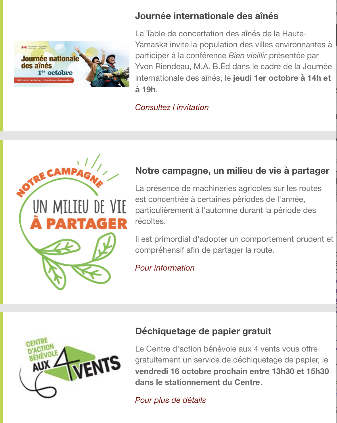 Infolettre de la ville de Shefford